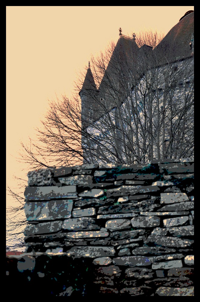 La difficulté à faire une photo ce n'est pas une vision - comprends pas là! - en plus tu illustres la difficulté en montrant que le seul moyen que tu as trouvé c'est de postériser une partie de la photo, ça ne change rien à la hpoto en elle même. Franchement je ne vois pas pourquoi tu veux photographier ce truc si ça ne t'apporte rien. Perplexe je suis. Quand des gens viennent faire un stage tango c'est parce que le sujet leur donne des idées pas parce qu'ils ont envie de danser; si tu es passionnée par ce chateau il faut le faire partager, pas nous montrer que c'est impossible à photographier, ce que des passionnés du sujet vont te prouver en un rien de temps