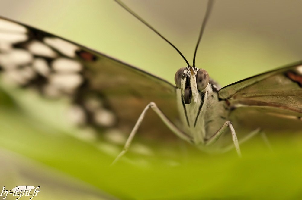 . Cela dit, tu ne peux pas faire autrement avec ton cadrage en mettant la tête du papillon sur le point de force haut-droit, par contre si tu avais mis la tête du paps sur le point de force bas-droit, quitte à couper un peu les pattes, tu aurais eu les antennes et ça aurait enlevé un peu de la feuille floue au premier plan.