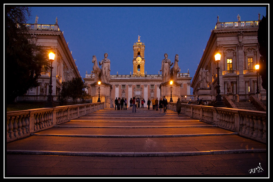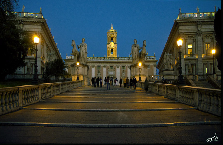Les lampadaires qui éclairent cette partie du Capitole sont bien jaune-orangés, pas blanc.