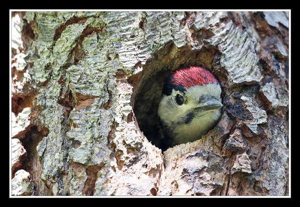, pratiquement prêt à l'envol, quelques images d'une longue série sur les regard curieux du monde extérieur d'un jeune pic épeiche.