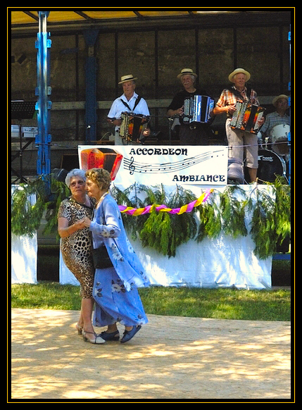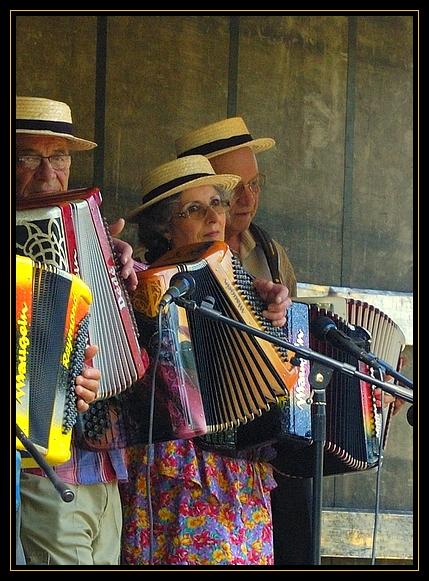 Mais même en pleine lumière il faut quand même choper le bon moment ( donc exit la 1 ,main devant le visage), cadrer ce qu'on veut (pourquoi on n'a pas tout l'accordéon à gauche sur la 2 , sinon fallait couper au niveau de l'accordéonistE), se déplacer au culot (la 3 entrer sur la piste et mettre les danseurs au premier plan) et changer d'optique si besoin (sur la 4 ils sont perdus tout petits, on aurait envie d'un plan plus serré)