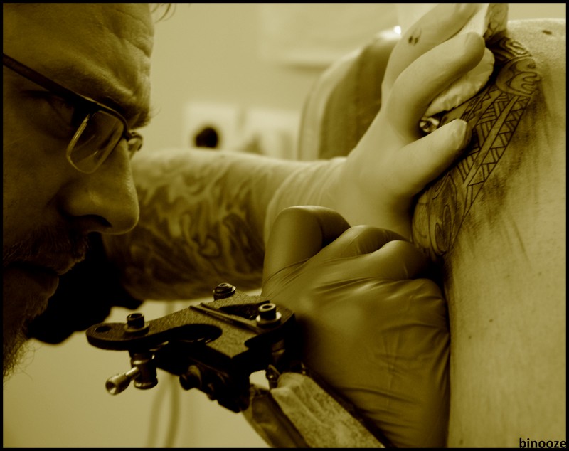je pose la question parce que dans cette sélection je vois surtout du matériel, des outils parfois en gros plan et c'est un peu éloigné du titre que tu t'es proposé, c'est surtout l'art qui me manque, là c'est très technique. Dans cet esprit c'est plus la 1 que je retiendrais, expression et concentration du tatoueur (mais le cadrage est un peu serré, la map ailleeurs finalement c'est pas idiot, c'est un choix, mais j'aurais aimé voir un peu plus du tatouage)