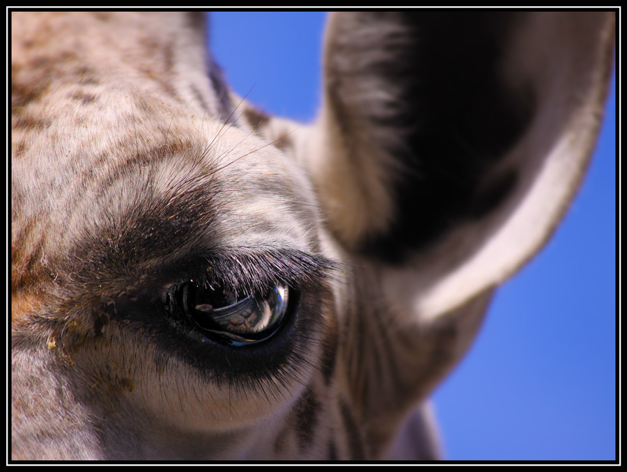 En voilà une autre... avec la compression ce n'est pas évident, mais en grandeur (40 x 50), on voit les barrières de l'enclos se refléter dans l'œil de ce girafon...