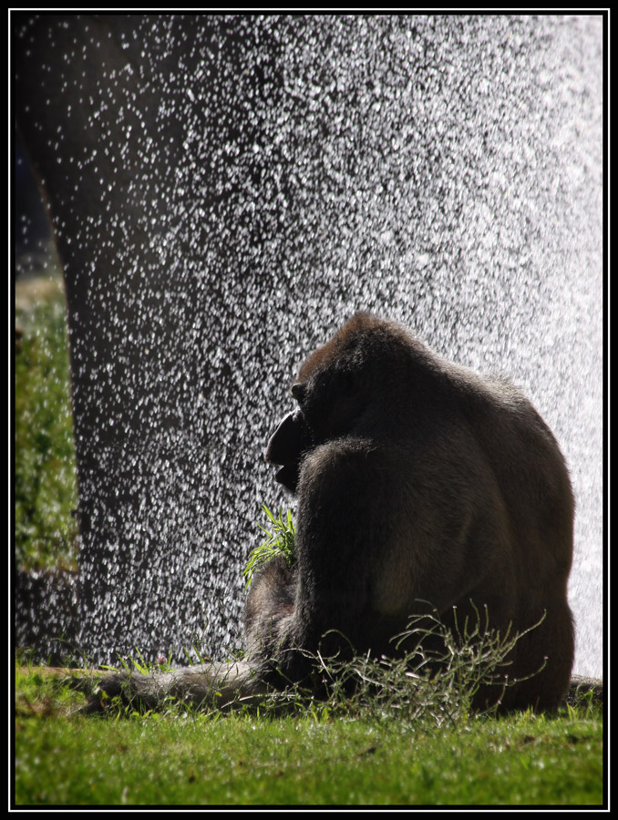 J'aime beaucoup la lumière avec les gouttes sur la photo du gorille.