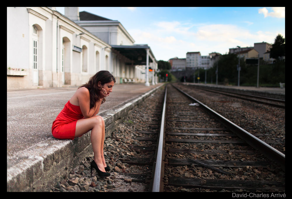 hérance d'une jeune femme aprés un rendez-vous amoureux manqué dans une gare en attendant le train pour son retour