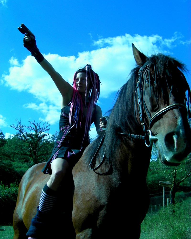 Moi j'aime bien ces couleurs un peu psychédéliques qui vont bien avec celles de "oripeaux" de la cavalière