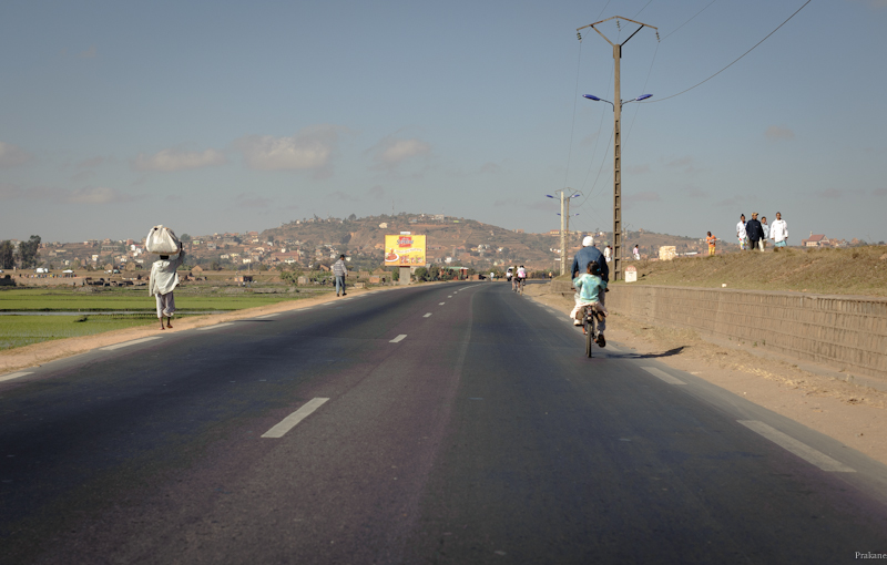 La photo a été prise a bord d'un taxi tôt le matin sur la route qui mène de l'aéroport vers le centre ville d'Antananarivo. La nuit, beaucoup de personnes évitent ce trajet car il y a beaucoup de raquettes aussi bien des brigands que de policiers mal intentionnés. Mais le matin c'est plus tôt calme...
