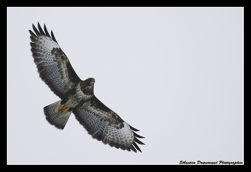 . Pendant que je suivais des traces de Chevreuils dans la neige, cette Buse variable (Buteo buteo) est venue me survoler à basse altitude avant de s'apercevoir tardivement que cet arbre était bien suspect