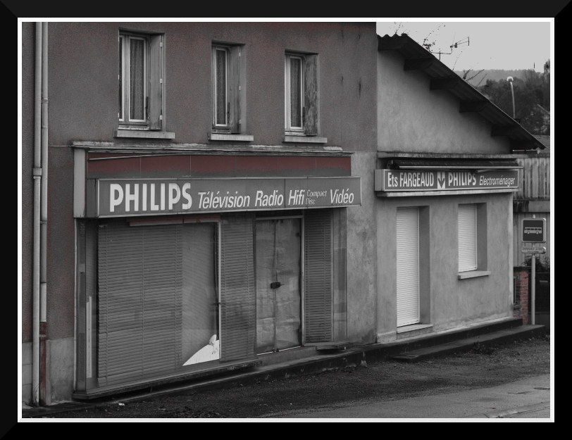 Sans vouloir vous gâcher le moral, quelques vitrines de Chateauneuf la Forêt, un jour de pluie.