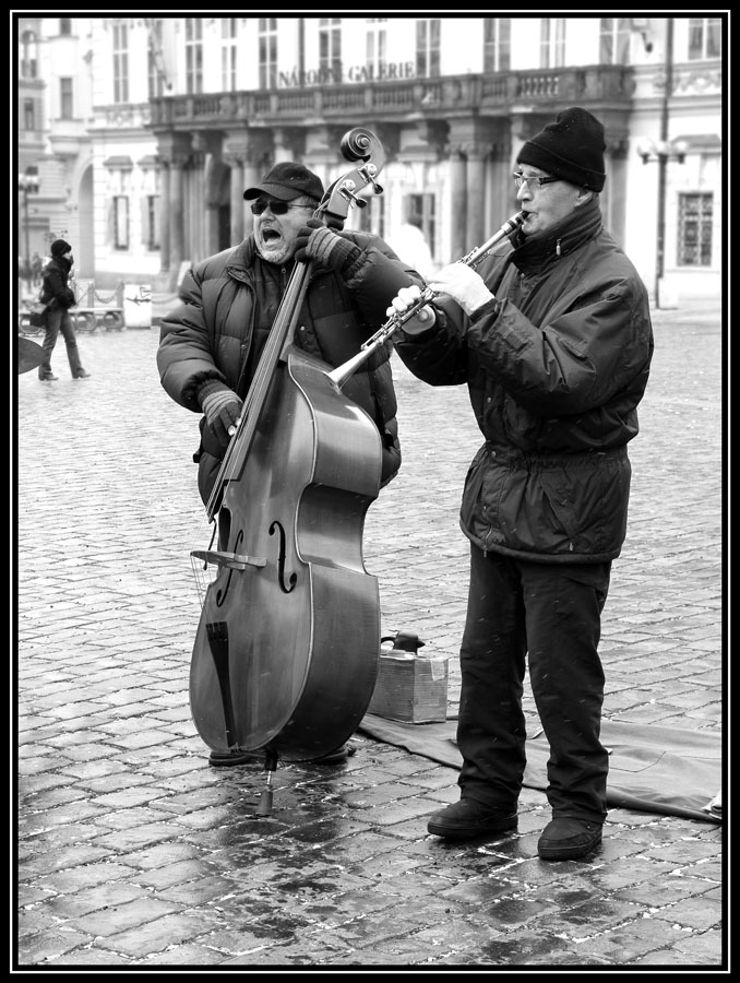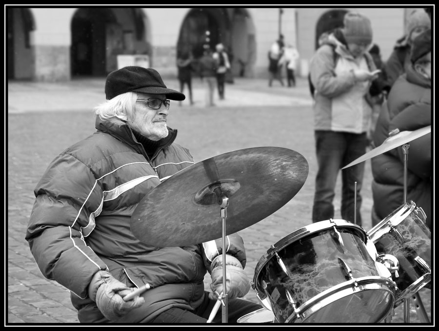 Température -7°... une petite neige virevolte... et ils jouent pour le plaisir (sans faire la manche)... avec des moufles... respect !...