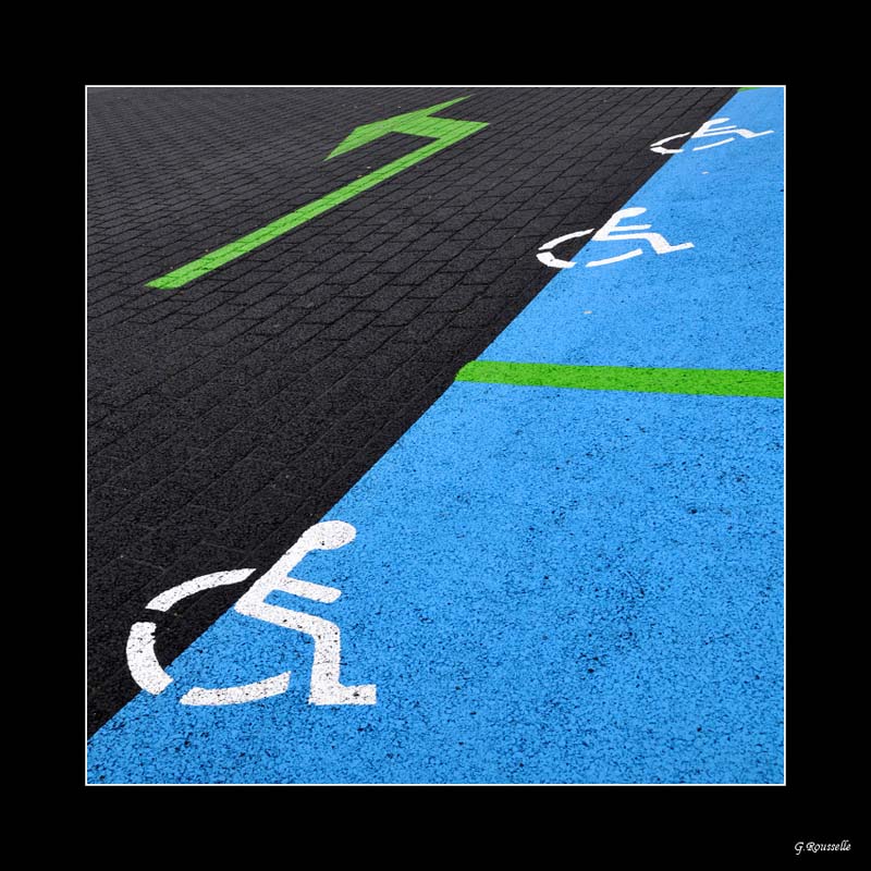 Flo , Stephane merci de votre passage et"critiques";),alors pour toutes mes photos de la série "Vues Basses" elles ne sont pas le fruit du hasard,je ne photographie pas tout ce qui est tracé ou effacé sur le sol sans que cela m’évoque quelque chose,quand je cadre quoique ce soit dans mon viseur c'est que cela m'inspire une idée,un ressentiment,un message,un souvenir,la vie ,la mort etc...... et donc toutes c'est photos ont un titre,et mon inspiré une certaine vision,en l’occurrence pour ces 2 photos ,la 1ere s’appelle "évitement" et la 2eme "embouteillage",et donc principalement pour cette 2eme("embouteillage") le positionnement de la flèche n'est pas le sujet de la photo,et n'est la que pour équilibrer l'ensemble ,alors que inversement dans la 1ere("évitement") la flèche a son importance.:P