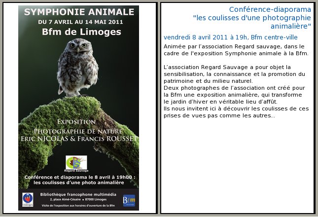 Re: Expo et conférence photo animalière à la BFM