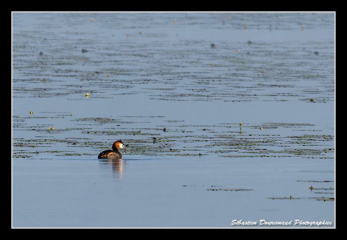 Je suis bientôt rejoins par Eric et Anne-Marie qui s'installent à leur tour dans l'affût. Les déclencheurs font crépiter les obturateurs tandis qu'un Ragondin nage tranquillement vers nous au milieu des couples de Grèbes huppés et des jeunes Canards colverts immatures.