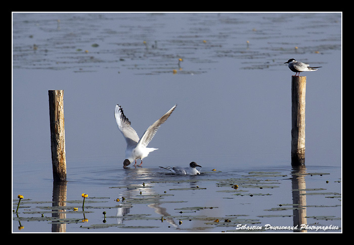Une Guifette moustac se glisse dans le groupe de Mouettes tandis qu'un Martin pêcheur me passe devant le nez dans un éclair bleuté accompagné de son sifflement caractéristique.