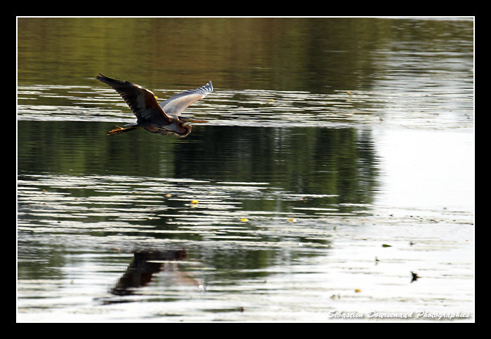 . Mais en contre partie, j'ai une photo d'une Aigrette garzette en vol où l'on aperçoit dans le fond un immature de Bihoreau gris dans l'eau avec des Canards.
