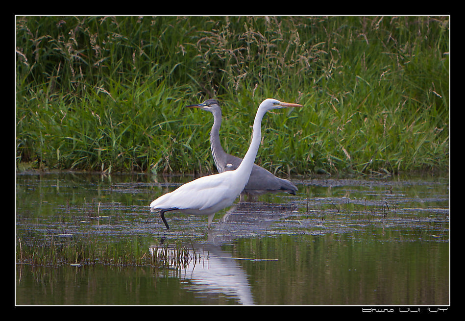 L'intérêt que je voyais aussi à la mienne, est la présence du ragondin entre les deux oiseaux.