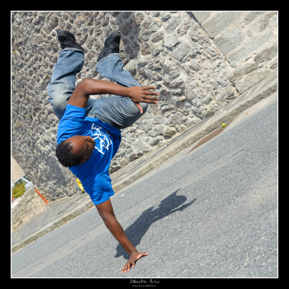 Quelques essais lors d'un spectacle de rue de hip-hop.