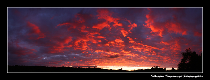 Le sujet étant la lumière, je me contente finalement assez bien de ne pas avoir de premier plan original à cet endroit et cette ligne d'arbres en ombre chinoise matérialisant l'horizon me va bien.