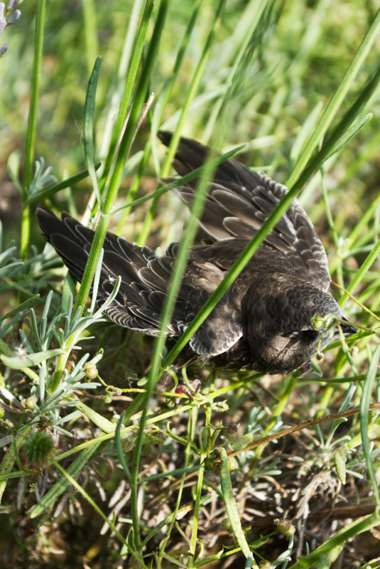 De nombreux martinets nichent sous nos toits. Il arrive qu'un jeune tombe avant d'être capable de voler...C'était le cas cet été, devant la porte. J'ai donc fait quelques images. Je vous les soumets pour avis.