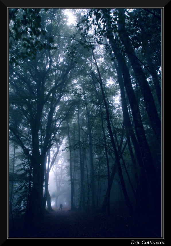 la première est splendide! j'aime la tonalité et le cadrage que tu as choisi, l'impression d'oppression immobile de la foret qui s'oppose au dynamisme "joyeux" du personnage! bravo, elle me parle beaucoup cette photo