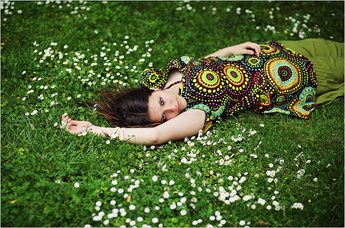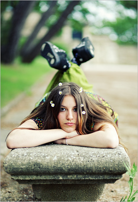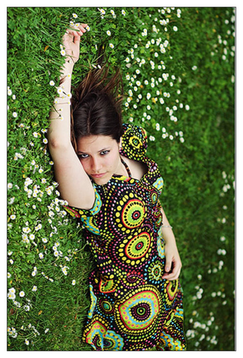 J'aime bien la dernière proposition d'aurelien. Je trouve que l'intérêt est du coup, d'être juste un photo rigolote ( l'expression de la fille et le cadre ambigue et bucolique ). Je veux bien voir les fameuses autres photo plus délire qui peuvent peut être plus correspondre au caractère de cette jeune fille... en tout cas, je trouve que celle où elle sourit ( la 3 ) est plus interessante que les pseudo photo mode.