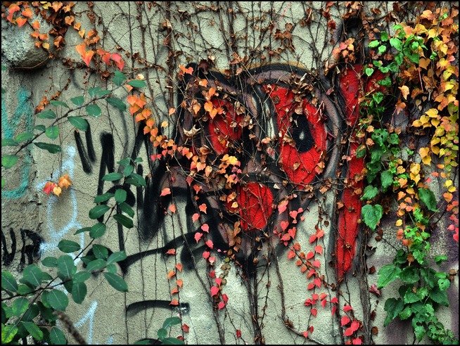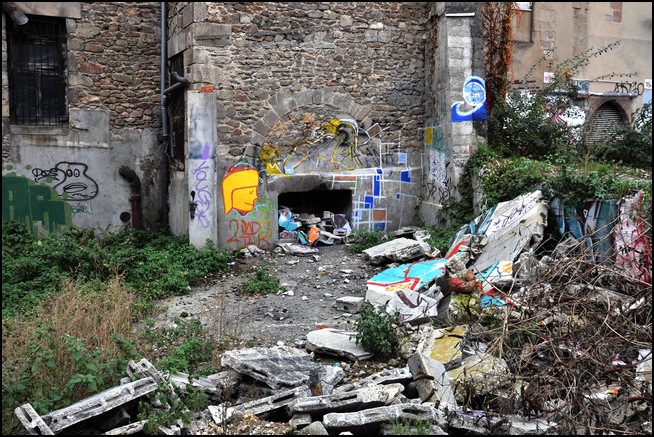 Sur ta série, il y en a plusieurs que je trouve vraiment sympa, où le graff n'est plus le seul centre d'intérêt : la toute dernière (n°27), qui tranche et qui interroge, la 26 avec le végétal qui va recouvrir le graff. J'aime aussi beaucoup la n°11, où les végétaux en bas et la partie métallique en haut ferment la photo