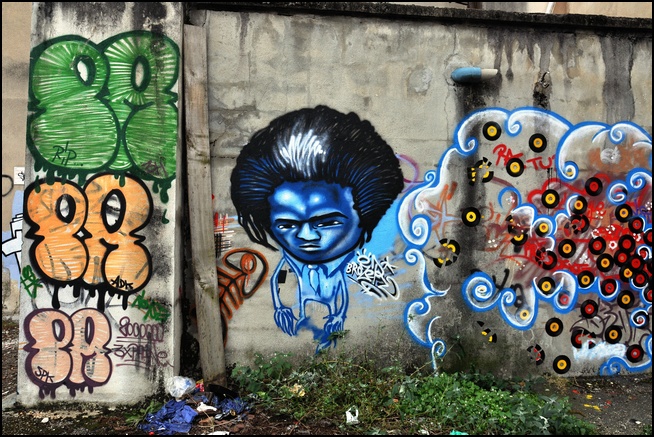 J'ai laissé ces photos "dans leur jus, pratiquement sans retouche ni recadrage; le plus important, pour moi, étant le graff lui-même!