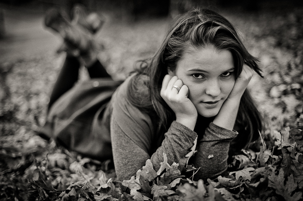 Très jolie modèle ... si je puis exprimer, 2 remarques : je trouve que tu n'as pas assez, à mon goût, exploité ses tâches de rousseur (fabuleuses, vraiment), ensuite je me serai arrangé pour ne pas voir ses genoux, bref j'aurai préféré un portrait, pur et dur ...