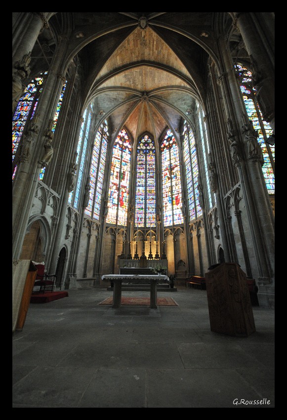 D'accord avec les autres. C'est superbe.Tu as carrémént bien réussi la mise ne valeur du bêton brut par les lumières tamisées des vitraux.