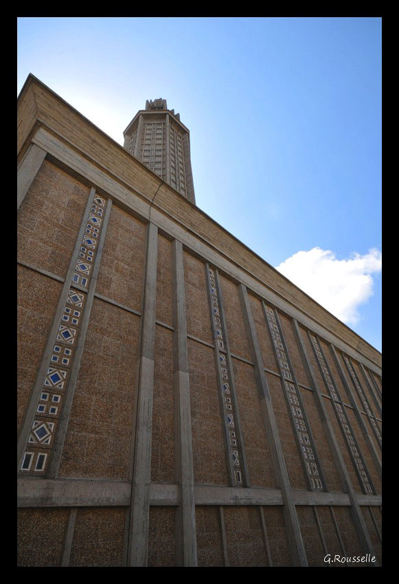 Eglise saint Joseph du Havre,par l'architecte Auguste Perret elle fait 107m de haut et les vitraux sont d'une femme, Marguerite Huré.:)