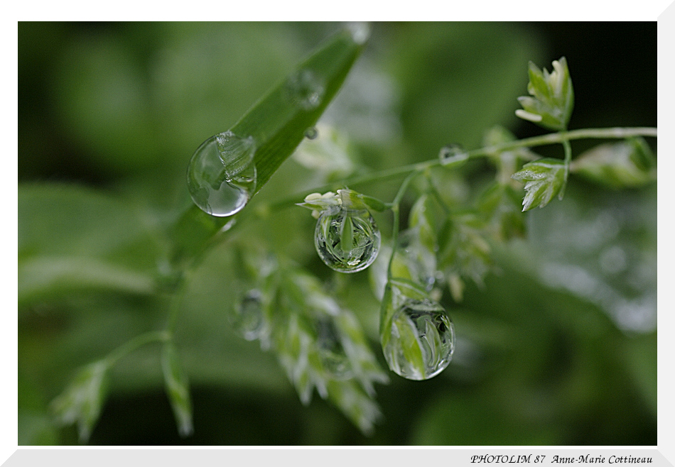 L'avant dernière et surtout la 4 sont magnifiques. Je reste persuadé que le manque de piqué sur certaines de tes photos est dû à une imprécision au niveau de la mise au point, car quand la MAP est bonne, tes gouttes se transcendent comme sur la photo n°4.