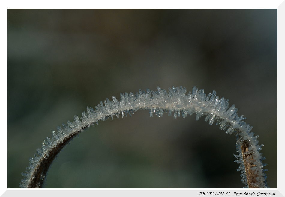 ta dernière photo du givre est très chouette! tout dans l'ambiance, il fait froid, on a envie de retourner au chaud devant un bon feu de cheminée!!