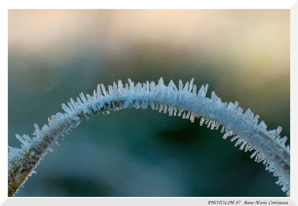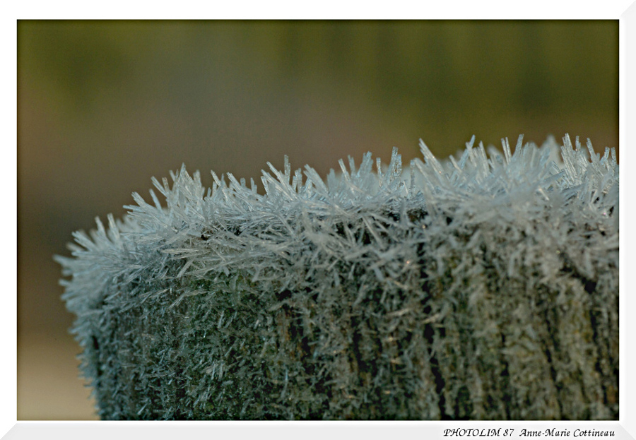 ta dernière photo du givre est très chouette! tout dans l'ambiance, il fait froid, on a envie de retourner au chaud devant un bon feu de cheminée!!