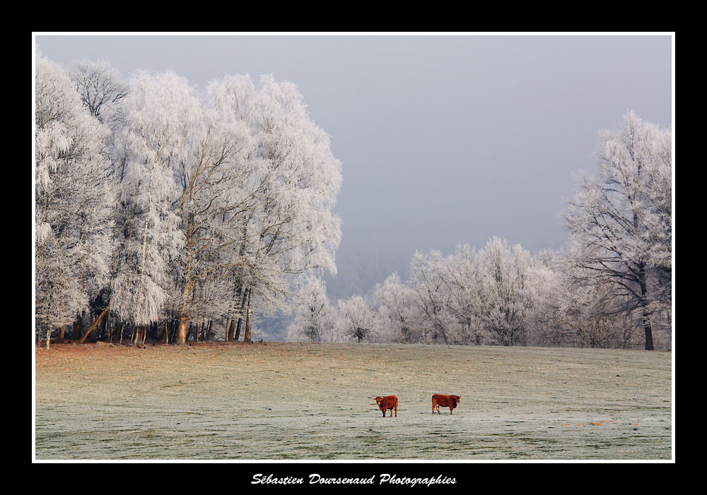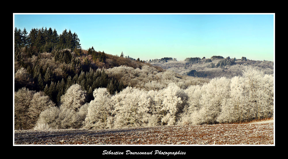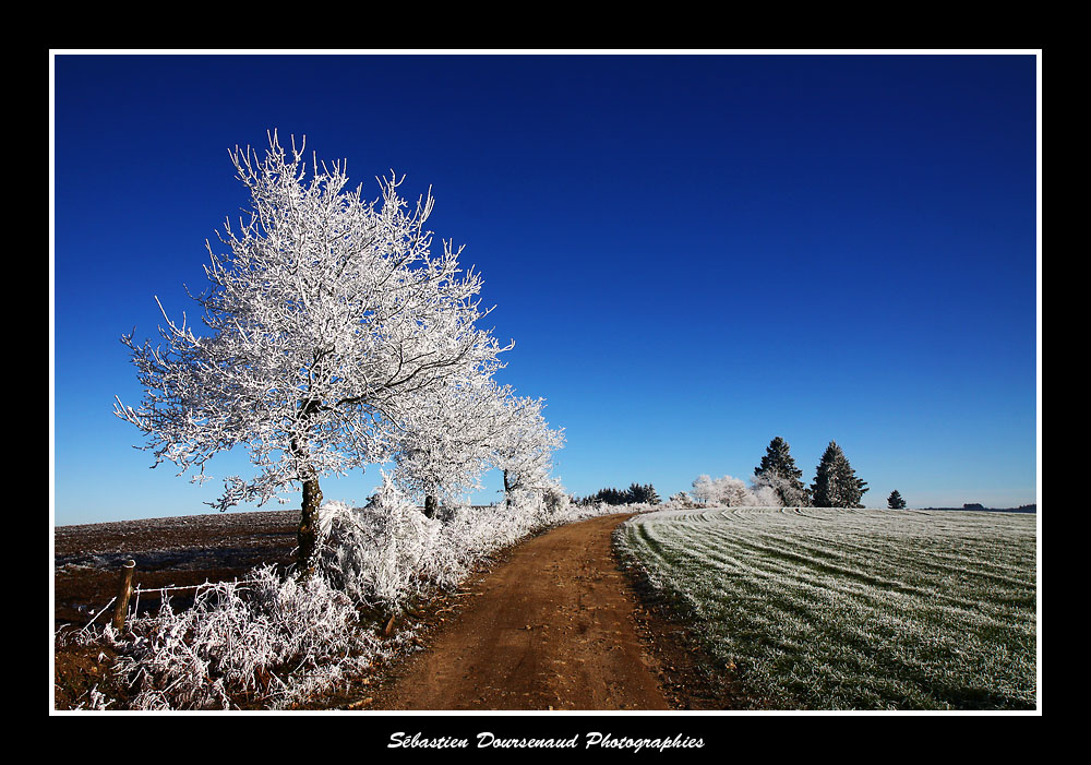 Il faisait -6°C et je marchais paisiblement dans un petit chemin de campagne caillouteux qui longeait une crête devant me mener sur une hauteur d'où l'on a une vue imprenable sur le sud du département, du plateau de Millevaches jusqu'aux Monts des Cars.