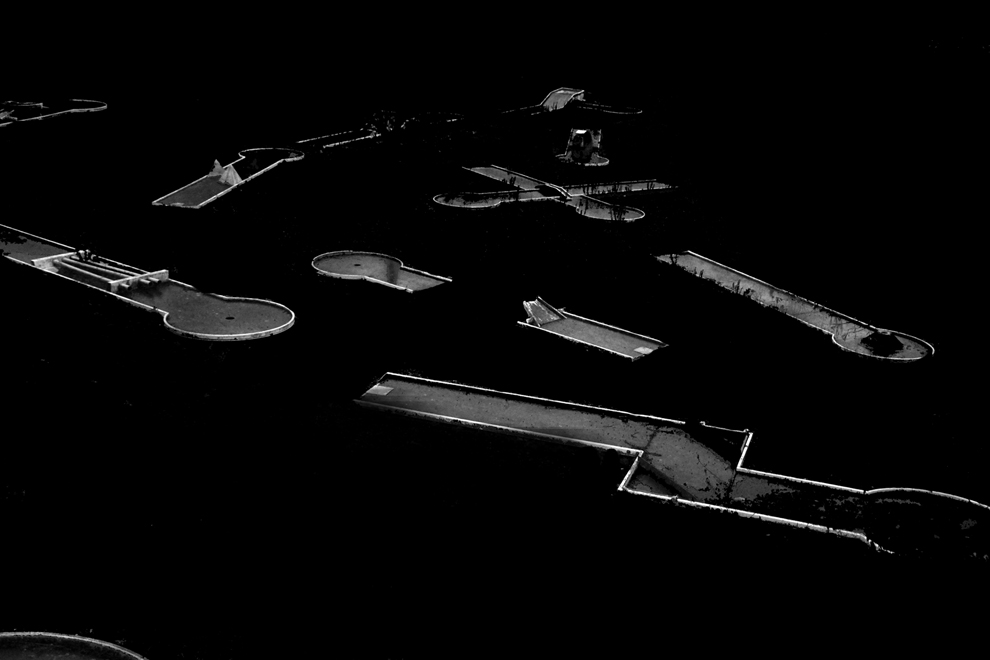 Tentative de rendu des contrastes et effets de pluie sur le golf miniature près du quorum.