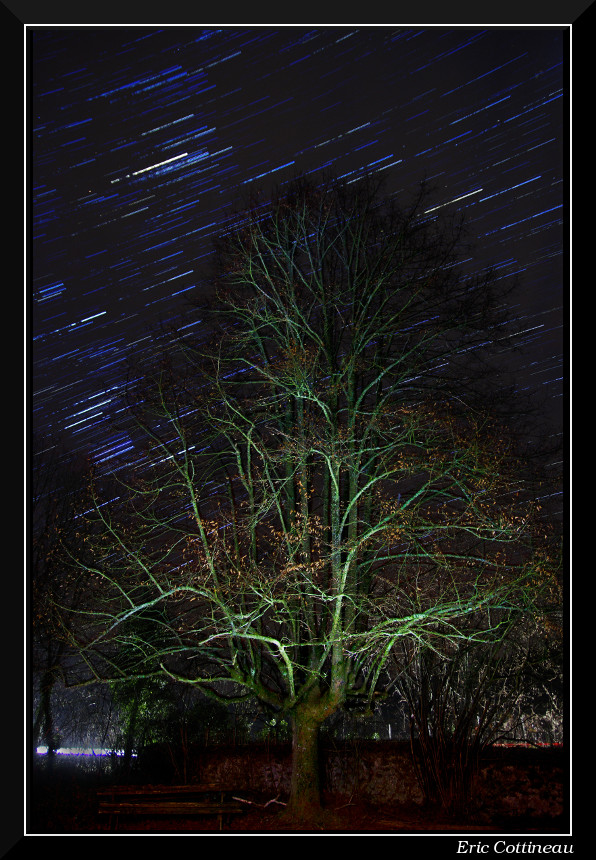 C'est plutôt réussi, le light-painting met bien l'arbre en valeur, la multi-pose sur le ciel étoilé met bien en évidence le mouvement et la trainée laissée par les phares de la voiture apporte un plus intéressant. J'adhère et on attend les suivantes...