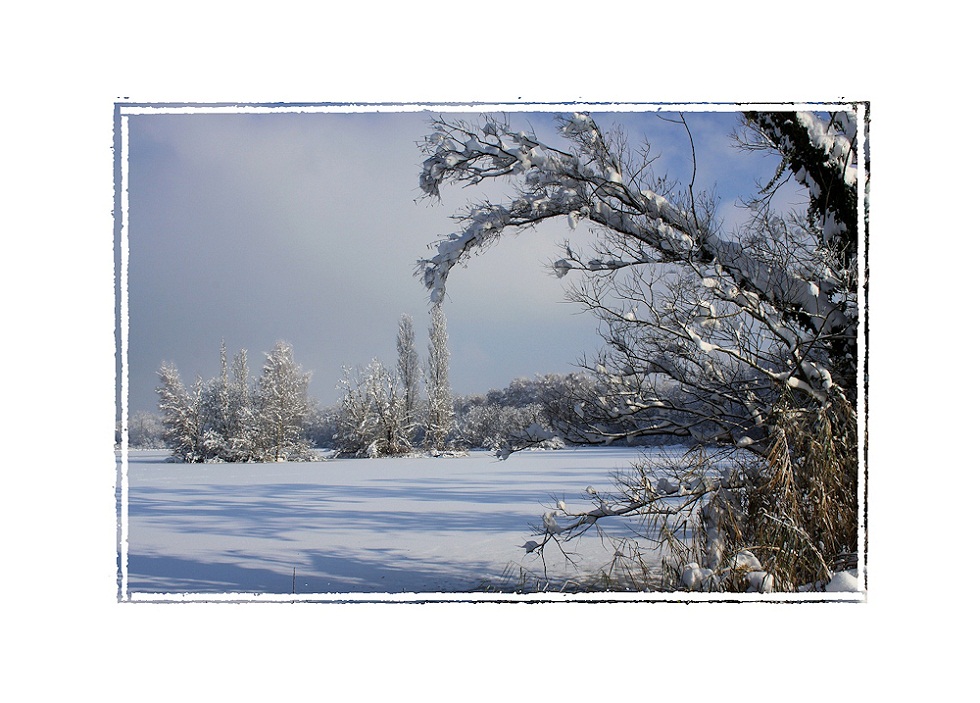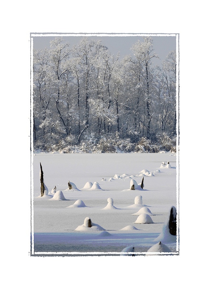 Autant ce genre de graphisme fonctionne à merveille sur la 4 de la 1ère série, autant à mon sens çà ne marche pas sur celle-là. peut-être parce qu'il y a trop de "bosses". Je pense que l'idée de la photo originale est bonne, simplement, il aurait fallu décaler la ligne de séparation neige-arbres de manière à ne pas l'avoir au milieu de la photo.