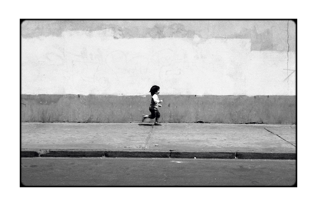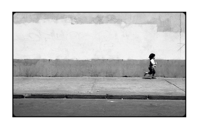 la voir au centre atténue ce côté uni du mur et la photo exprime moins de chose à mon avis que si elle était d'un côté ou de l'autre.