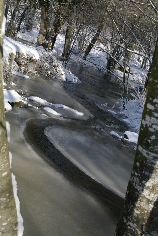 ce matin, toute la surface était gelée, l'eau ne passe + que sous la glace