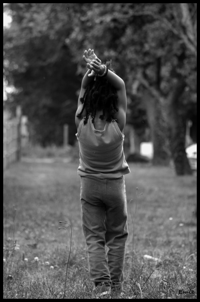 La 1 : j'aime bien cette image, même si effectivement les pieds coupés sont rédhibitoires ... le centrage du sujet devient intéressant parce qu'il développe une dynamique (les mains) ... je trouve pour ma part que tu as cadré trop serré (un défaut que l'on rencontre très souvent, et contre lequel je me bats également à chaque prise de vue ...) de sorte que cette dynamique ne s'exprime pas complètement ... j'aurai aimé plus de ciel /arbre flou en haut ...