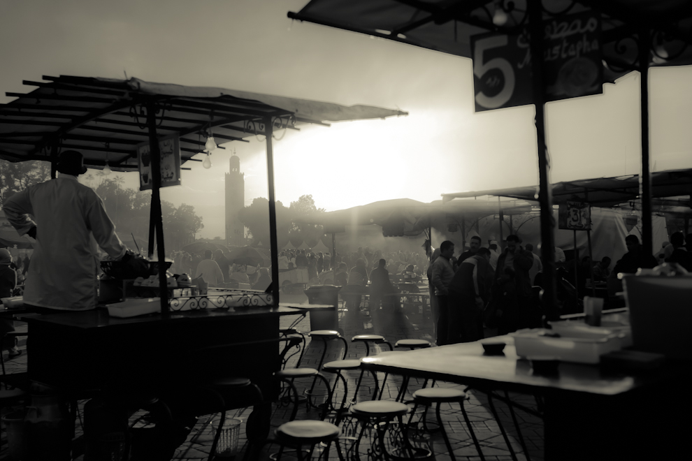 Marrakech façon argentique... coucher du soleil sur la place... belle lumière, bien gérée. Seb a raison; il ne manque que les parfums... et le bruit des rabatteurs...