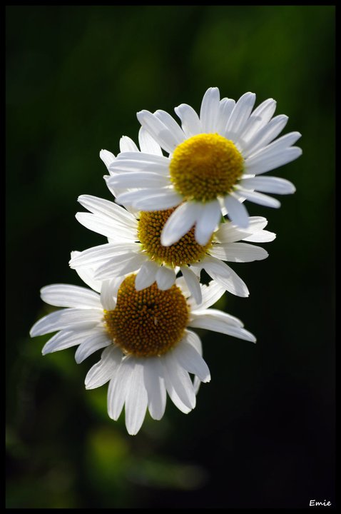 pour le reste, la lumière me semble correcte, mais si tu avais eu un petit réflecteur blanc (un simple petit morceau de carton) ça aurait contribué à éclaircir le cœur jaune de la marguerite.