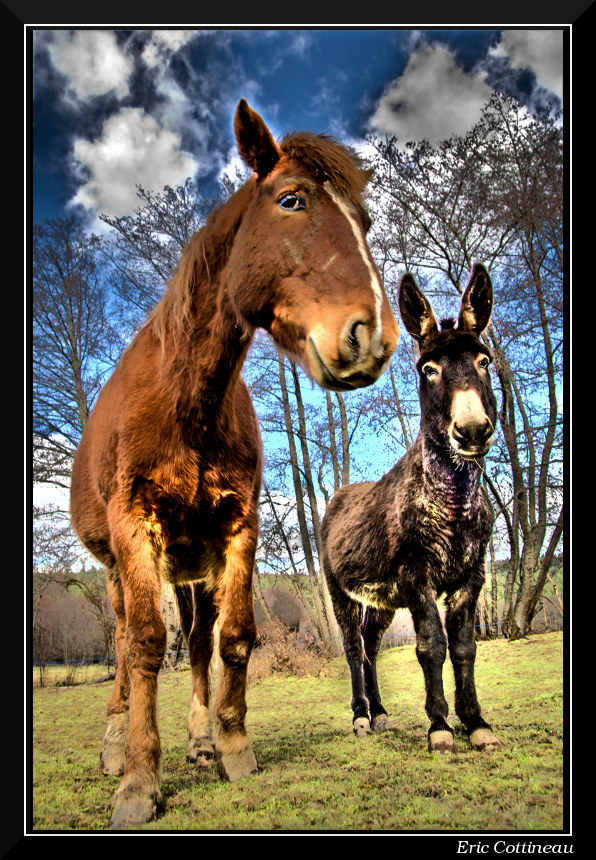 Je vous soumet deux essais de hdr à partir de photo de ma vache et du cheval et de son pote..