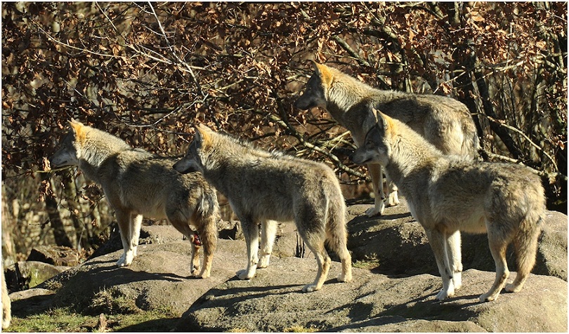 Sur la 2ème que je préfère, on a des tons de couleur un peu semblables et c'est dommage. Peut-être aurait-il fallut jouer sur la profondeur de champ pour avoir les loups sur un fond moins dense ?