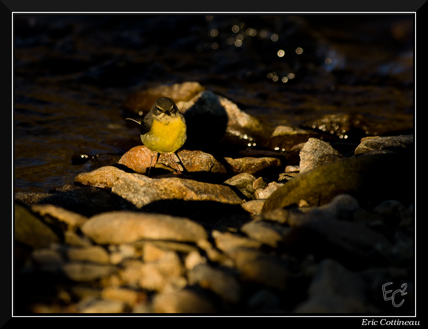 J'ai gardé l'ombre de chaque côté pour faire ressortir la lumière sur l'oiseau et les reflets sur l'eau..