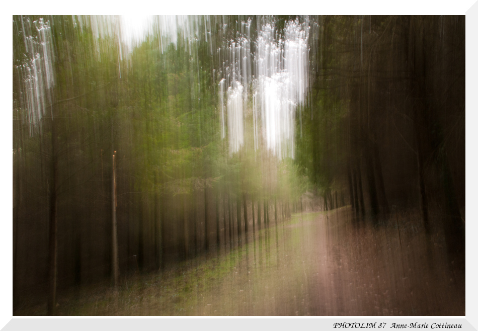 Les arbres eux bien sûr ne bougeaient pas et j'ai déplacé très lentement mon appareil du bas vers le haut.