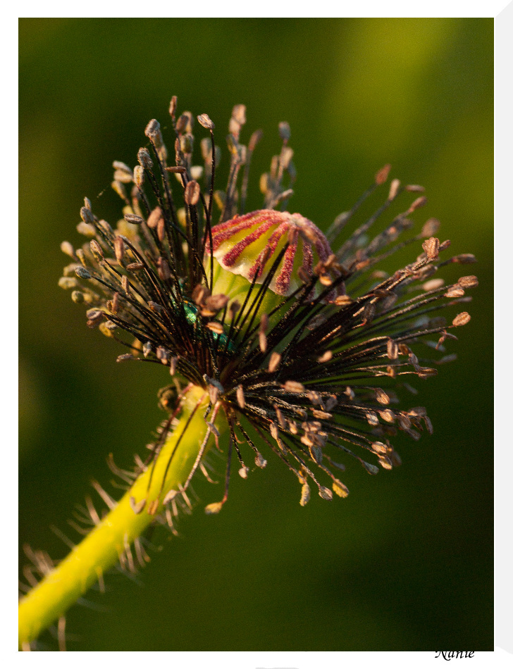 je l'aime bien celui ci : le coquelicot remplit bien la photo et j'aime la lumière rasante qui met en avant les "poils" sur la tige