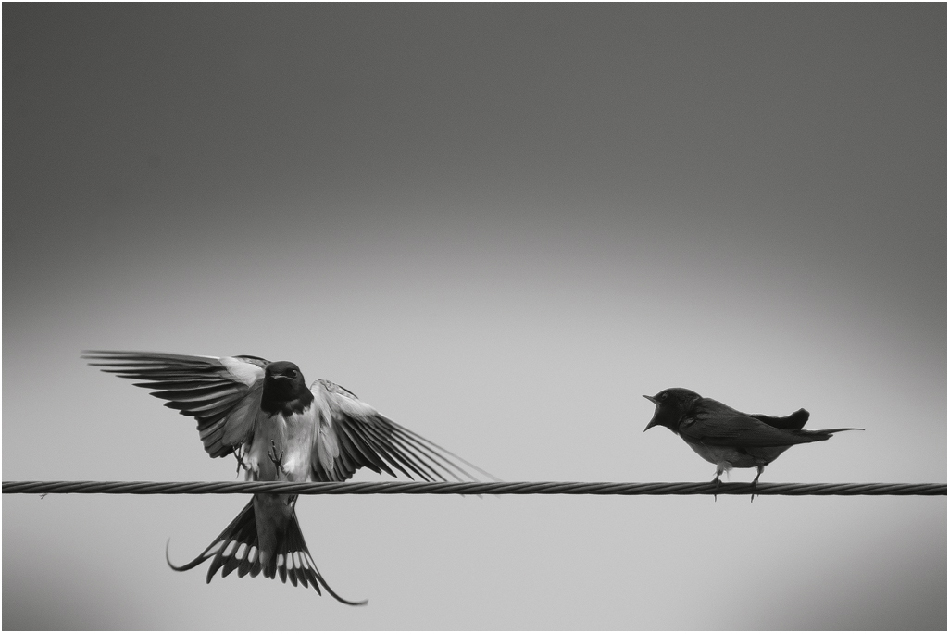 Si tu avais pris chacun des oiseaux sur une photo différente, déjà ça aurait fait 2 jolies photos... Mais là, les 2 rassemblés sur la même photo, je trouve ça super. Joli traitement NB également. Donc un grand bravo.