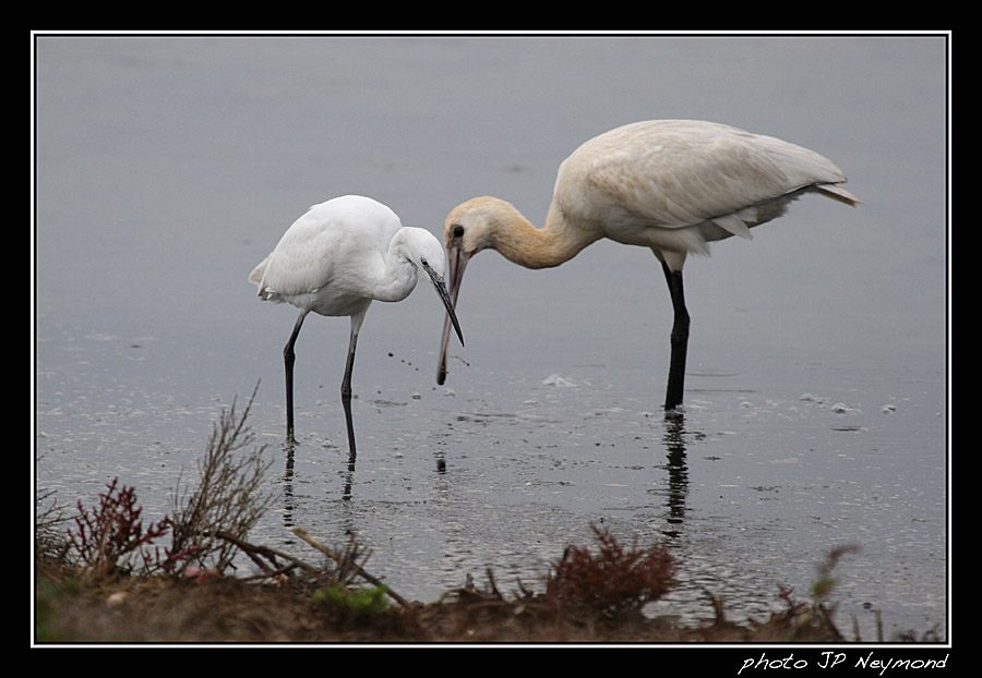 chasse coordonnée... la spatule retourne le fond, l'aigrette pique ce qu en sort... la solidarité naturelle.