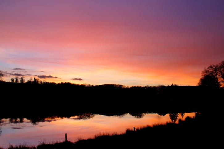 Riche palette de couleurs ce soir, au dessus d'un petit étang.
